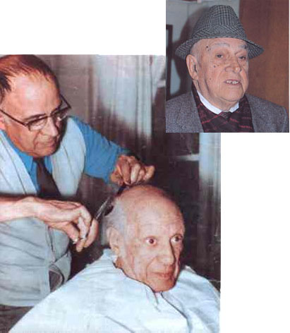 På den gamla goda tiden. Picasso blir klippt av sin vän barberaren.